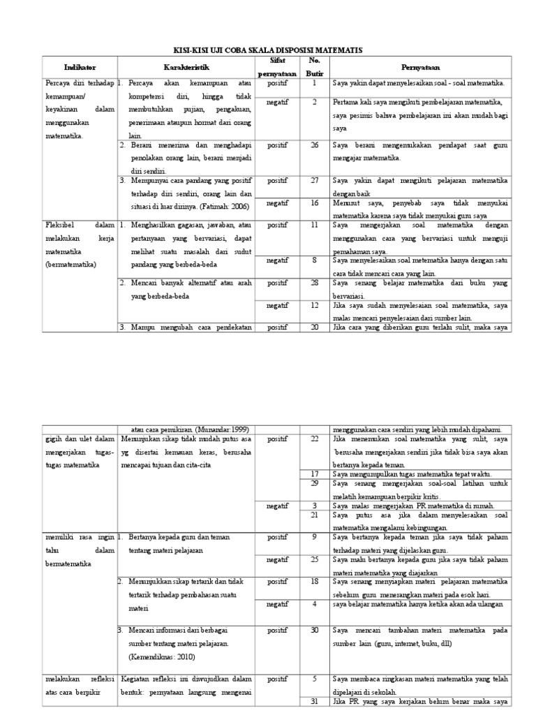 5 Kisi Kisi Uji Coba Skala Disposisi Matematis Siswa Revisi