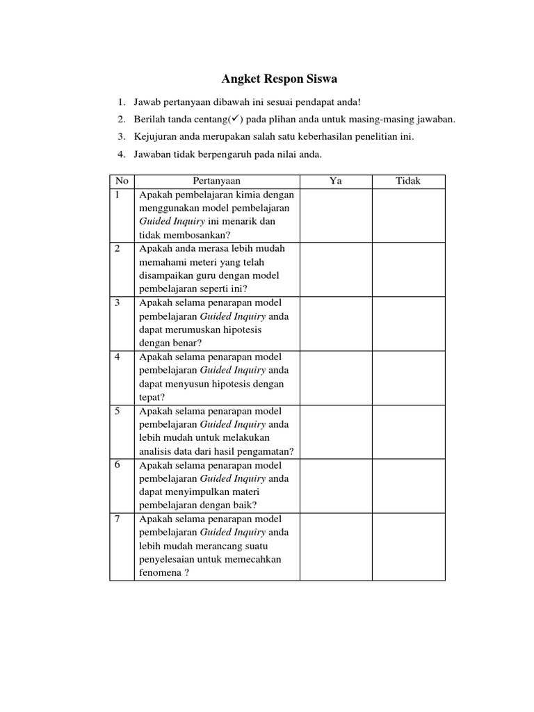 Angket Respon Siswa Terhadap Atl Lestari Academia Edu