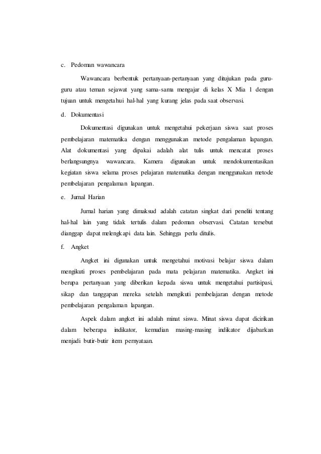 Menyusun lembar observasi untuk siswa yang digunakan dalam kegiatan pembelajaran selama PTK berlangsung disertai dengan pedoman observasi. Penelitian ini ingin mengungkap riwayat pendidikan alumni di universitas kemana para alumni pergi pasca selesai studi tingkat sarjana dan apa yang dilakukannya saat. Contoh angket penelitian adalah model yang sangat berbeda.