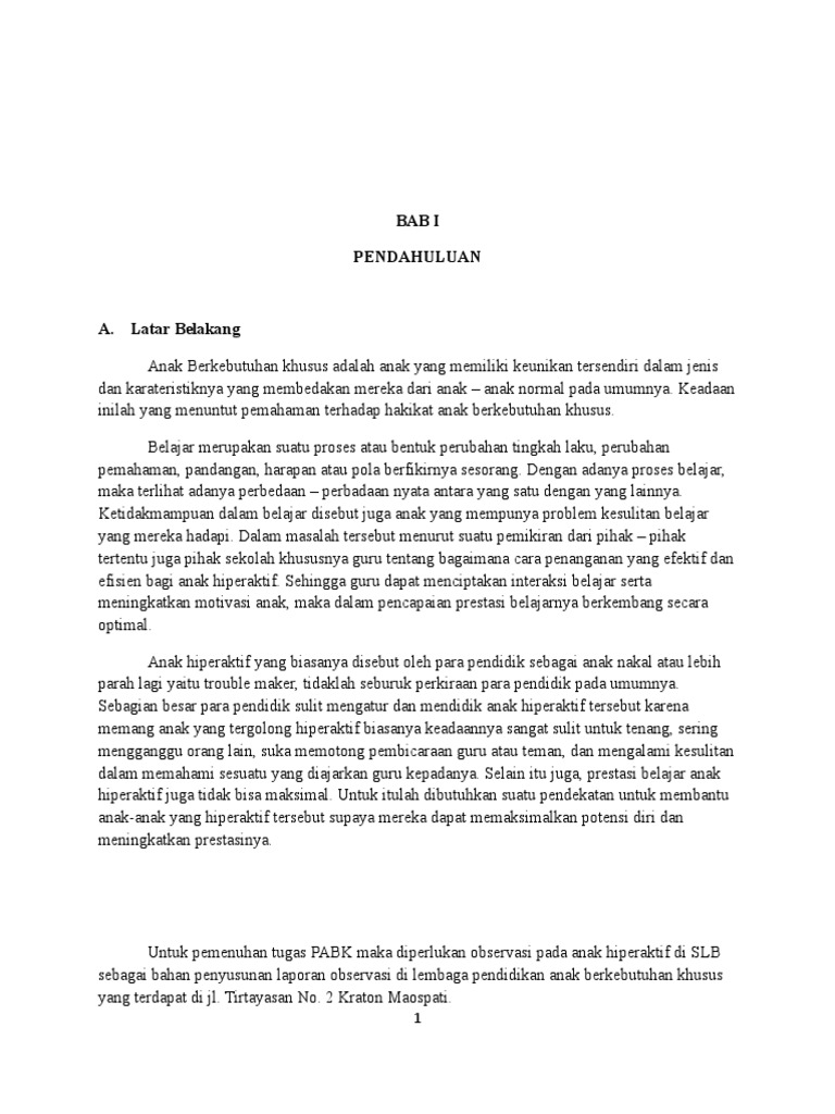 Contoh Laporan Observasi Anak Berkebutuhan Khusus Kumpulan Contoh Laporan