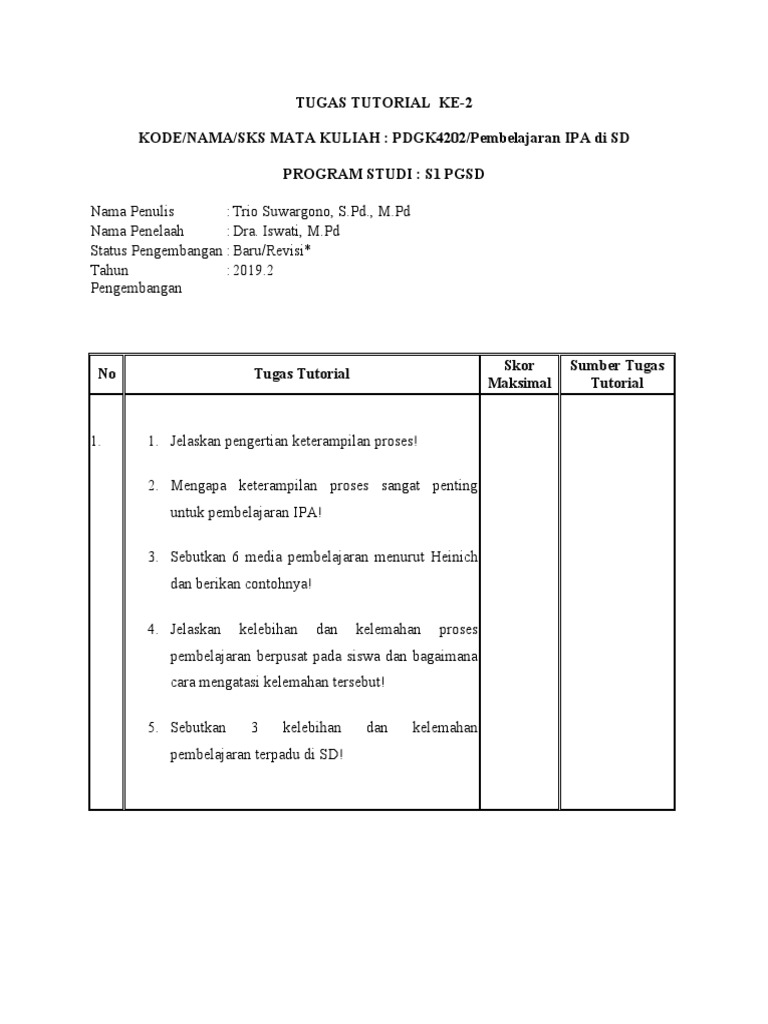 Tugas Tutorial Ke 2 Kode Nama Sks Mata Kuliah Pdgk4202 Pembelajaran Ipa Di Sd Program Studi S1 Pgsd